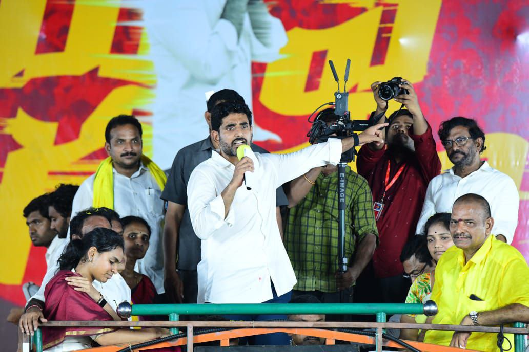 జాబ్ క్యాలెండర్ ఇవ్వలేదు, 2.30 లక్షల ఉద్యోగాలు ఇవ్వలేదు, ప్రతి ఏటా 6,500 పోలీసు ఉద్యోగాలు ఇవ్వలేదు, గ్రూప్2 లేదు, డిఎస్సి లేదు. ఉన్న అంబేద్కర్ స్టడీ సర్కిల్స్, బీసీ స్టడీ సర్కిల్స్ మూసేసాడు. జిఓ77 తీసుకొచ్చి ఉన్నత విద్య చదువుతున్న వారికీ ఫీజు రీయింబర్స్మెంట్ పధకం రద్దు చేసాడు. యువగళాన్ని విన్నాం. ప్రభుత్వ, ప్రైవేట్, స్వయం ఉపాధి ద్వారా 5 ఏళ్లలో 20 లక్షల ఉద్యోగాలు కల్పిస్తాం. నిరుద్యోగ యువతకు యువగళం నిధి కింద నెలకు రూ.3000 ఇస్తాం. టిడిపి అధికారంలోకి వచ్చిన వెంటనే ప్రతి ఏడాది జాబ్ నోటిఫికేషన్ ఇస్తాం. పెండింగ్ పోస్టులు అన్ని భర్తీ చేస్తాం. అన్ని జిల్లాల్లో స్టడీ సర్కిల్స్ ఏర్పాటు చేస్తాం. జగన్ రైతులు లేని రాజ్యం తెస్తున్నాడు. జగన్ పరిపాలనలో నకిలీ విత్తనాలు, ఎరువులు, పురుగుల మందులతో రైతులు నష్టపోతున్నారు. రైతుల ఆత్మహత్యల్లో ఏపీ నంబర్ 3, కౌలు రైతుల ఆత్మహత్యల్లో నంబర్ 2. రైతుల్ని ఆదుకోకపోగా ఇప్పుడు మోటార్లకు మీటర్లు పెడుతున్నాడు. ఆ మీటర్లు రైతులకు ఉరితాళ్లు. మీటర్లు బిగిస్తే పగలగొట్టండి. టిడిపి మీకు అండగా ఉంటుంది. రైతుల బాధలు చూసాం. టిడిపి అధికారంలోకి వచ్చిన వెంటనే అన్నదాతకు ఏడాదికి రూ.20 వేలు ఇస్తాం.