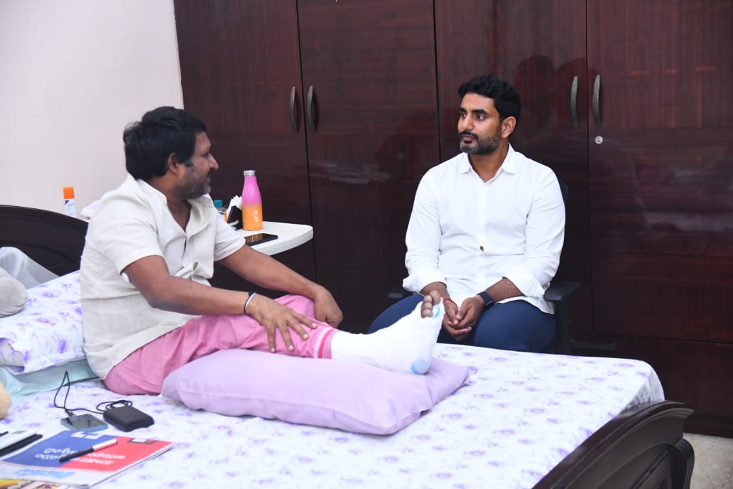ఇటీవల యువగళం పాదయాత్ర నెల్లూరు జిల్లాలోకి ప్రవేశించిన విషయం తేలిసిందే. నిన్న యువగలం లో భాగంగా నారా లోకేష్ పాదయాత్ర నెల్లూరు రూరల్ నియోజకవర్గం లో కొనసాగింది . పాదయాత్ర నెల్లూరు జిల్లాలోకి ప్రవేశించిన రోజు టిడిపి జాతీయ ప్రధాన కార్యదర్శి, టీడీపీ మాజీ ఎమ్మెల్సీ బీద రవిచంద్ర కాలికి గాయమైంది. ఆ విషయం తెలుసుకున్న నారా లోకేష్ అతని ఇంటికి వెళ్లి పరామర్శించాడు. బాగోగులు అడిగి తెలుసుకున్నాడు