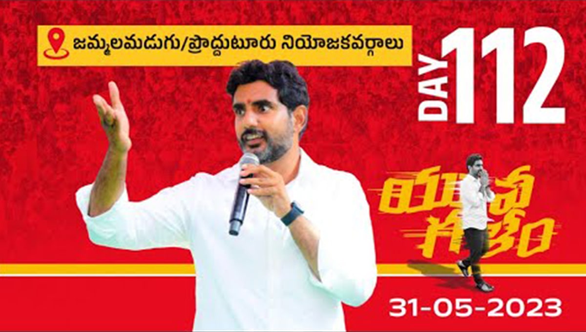 <strong>LIVE : Day-112 జమ్మలమడుగు/ప్రొద్దుటూరు నియోజకవర్గాల్లో నారా లోకేష్ యువగళం పాదయాత్ర</strong> [embed]https://www.youtube.com/watch?v=elRFkjtcNBg[/embed]