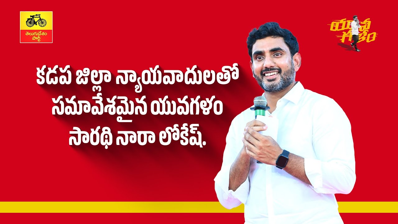 <strong>LIVE : Day-120: కడప జిల్లా న్యాయవాదులతో సమావేశమైన యువగళం సారథి నారా లోకేష్.</strong> [embed]https://www.youtube.com/watch?v=OiYmpUTfpeE[/embed]