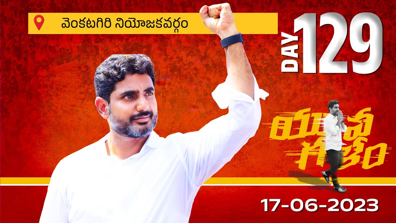 <strong>LIVE : Day-129: వెంకటగిరి నియోజకవర్గంలో యువగళం సారధి నారా లోకేష్ యువగళం పాదయాత్ర.</strong> [embed]https://www.youtube.com/watch?v=J0lj0eUdXMU[/embed]