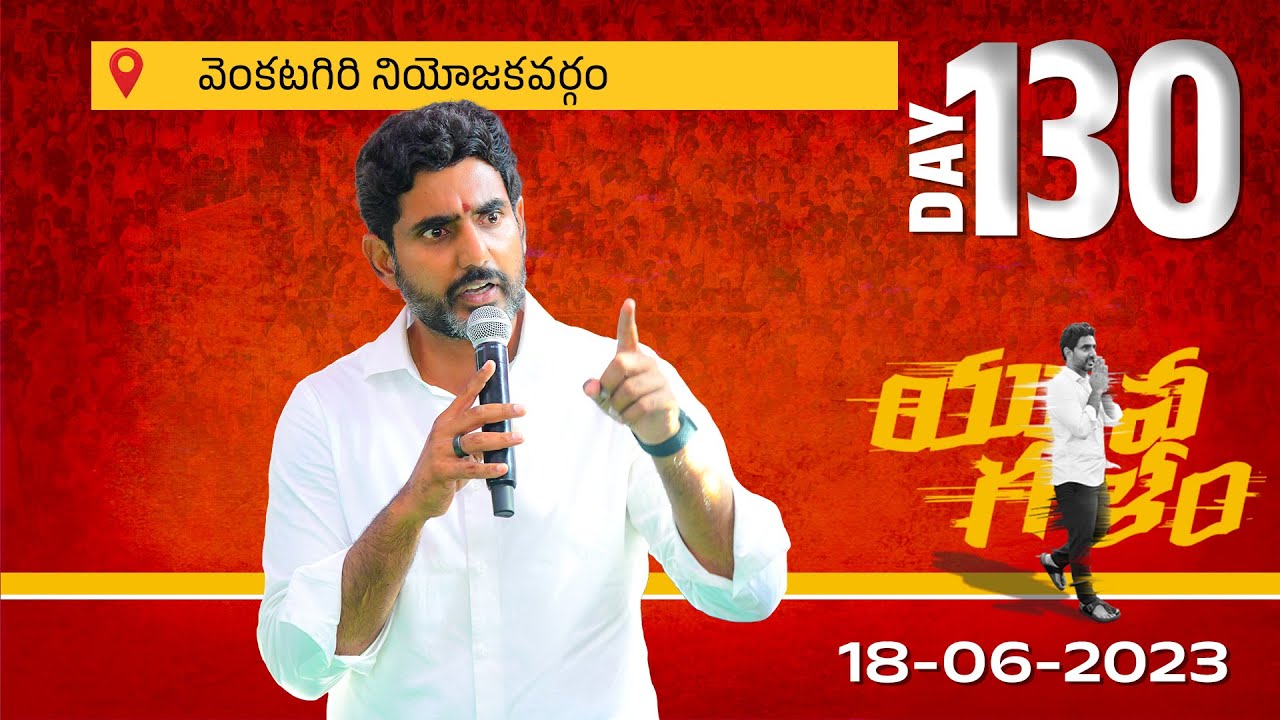 <strong>LIVE : Day-130: వెంకటగిరి నియోజకవర్గంలో యువగళం సారధి నారా లోకేష్ యువగళం పాదయాత్ర.</strong> [embed]https://www.youtube.com/watch?v=u6GWuLw3Ydw[/embed]