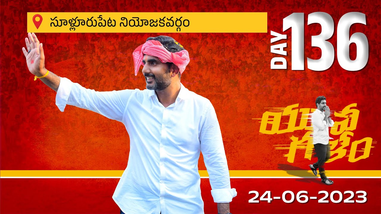 <strong>LIVE : Day-136: సూళ్లూరుపేట నియోజకవర్గంలో యువగళం సారధి నారా లోకేష్ యువగళం పాదయాత్ర.</strong> [embed]https://www.youtube.com/watch?v=yB_hfOBKl7M[/embed]