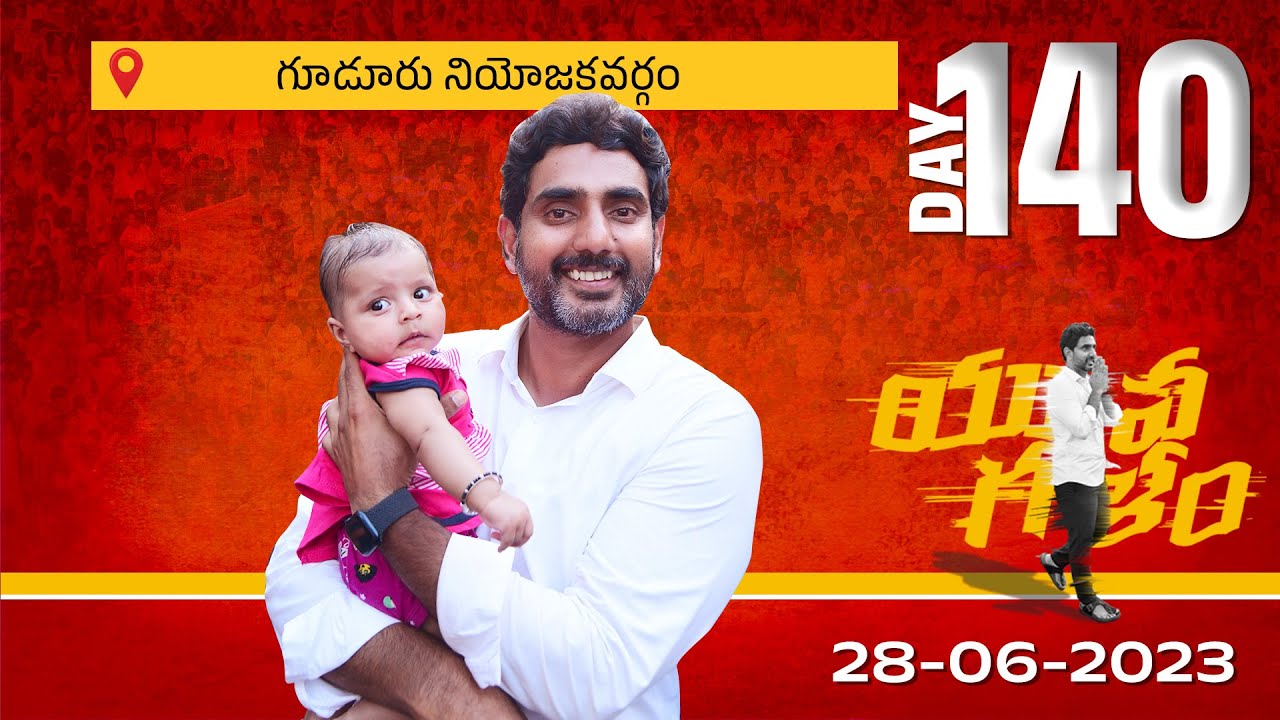 <strong>LIVE : Day-140 : గూడూరు నియోజకవర్గంలో యువగళం సారధి నారా లోకేష్ యువగళం పాదయాత్ర</strong> [embed]https://www.youtube.com/watch?v=FTct0IzULbI[/embed]