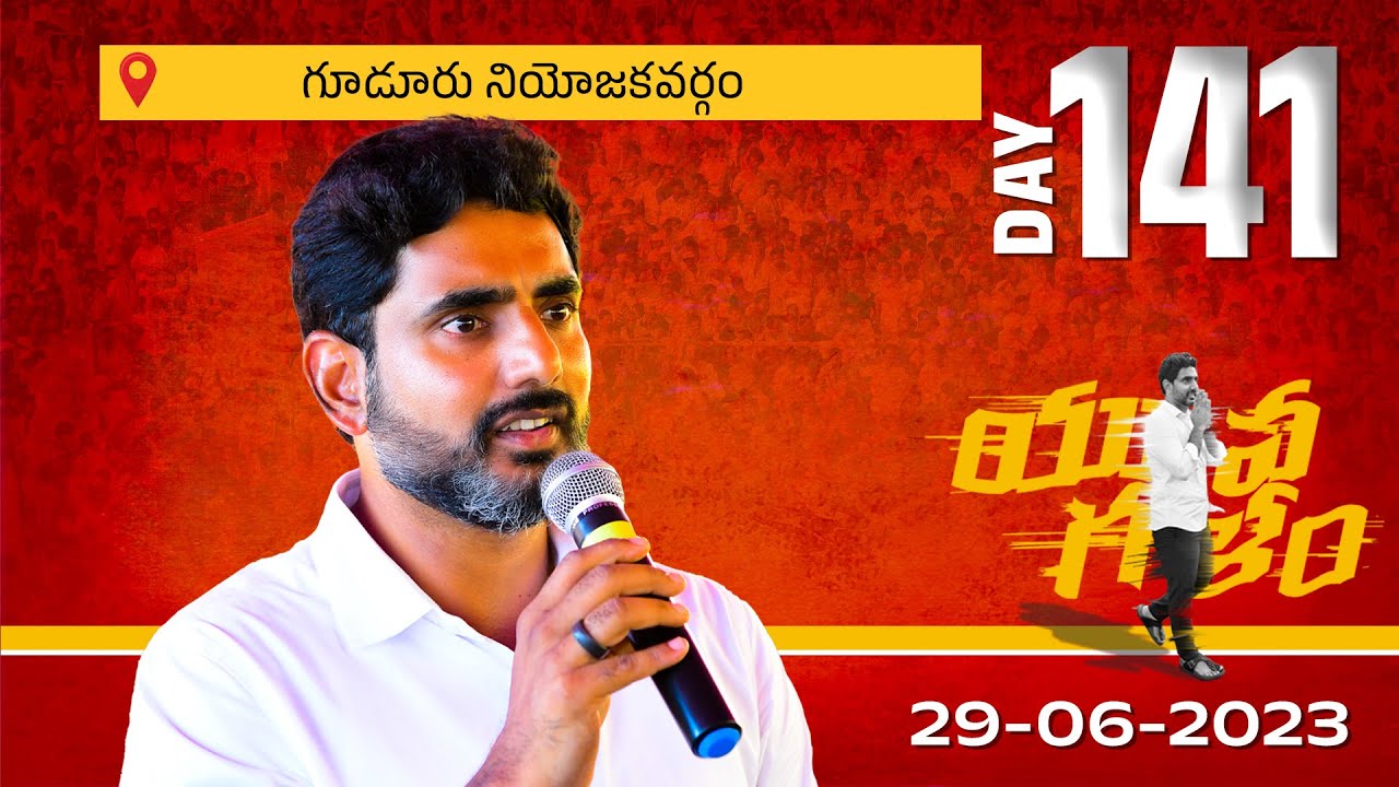 <strong>LIVE : Day-141 : గూడూరు నియోజకవర్గంలో యువగళం సారధి నారా లోకేష్ యువగళం పాదయాత్ర</strong> [embed]https://www.youtube.com/watch?v=yRWaipfxKzs[/embed]
