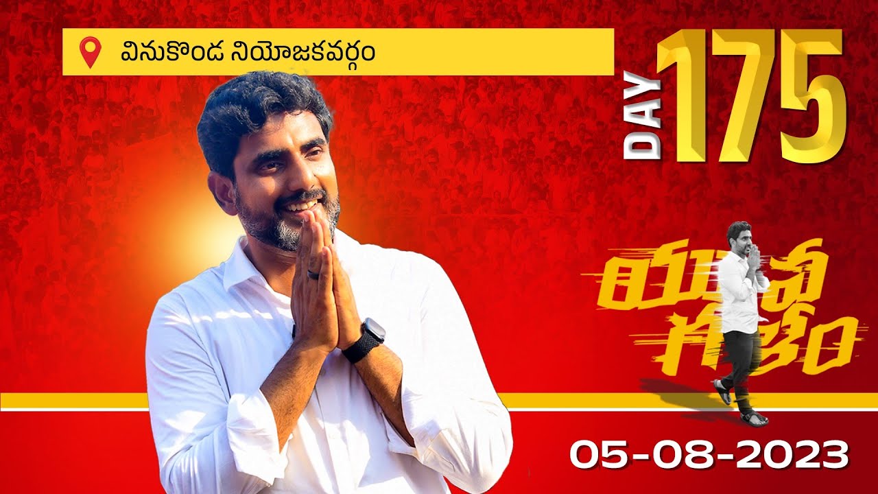 <strong>LIVE : Day-175: వినుకొండ అసెంబ్లీ నియోజకవర్గంలో యువగళం సారధి నారా లోకేష్ యువగళం పాదయాత్ర.</strong> [embed]https://www.youtube.com/watch?v=S8oI0kVpt38[/embed]