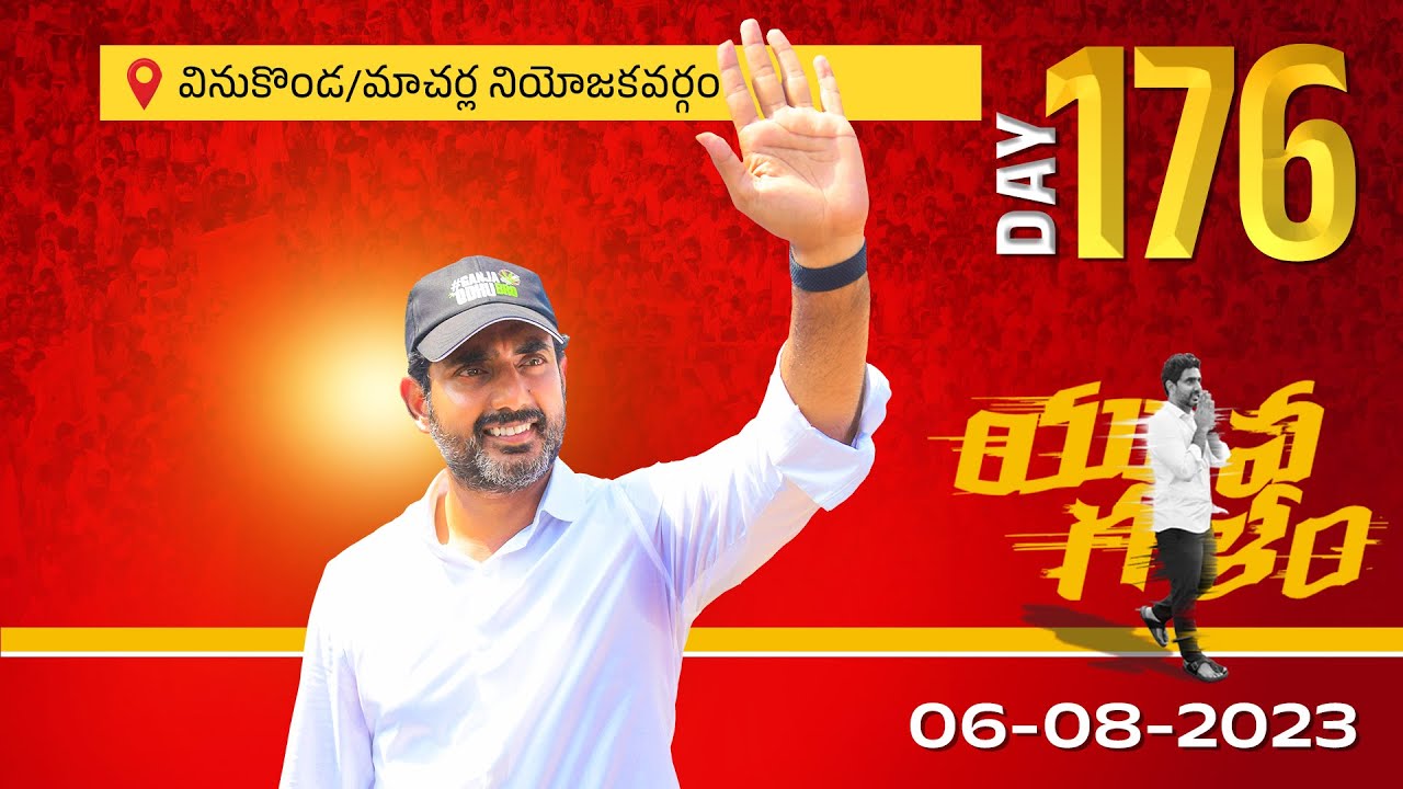 <strong>LIVE : Day-176: వినుకొండ/మాచర్ల అసెంబ్లీ నియోజకవర్గంలో యువగళం సారధి నారా లోకేష్ యువగళం పాదయాత్ర.</strong> [embed]https://www.youtube.com/watch?v=FwaUmr0SOjM[/embed]