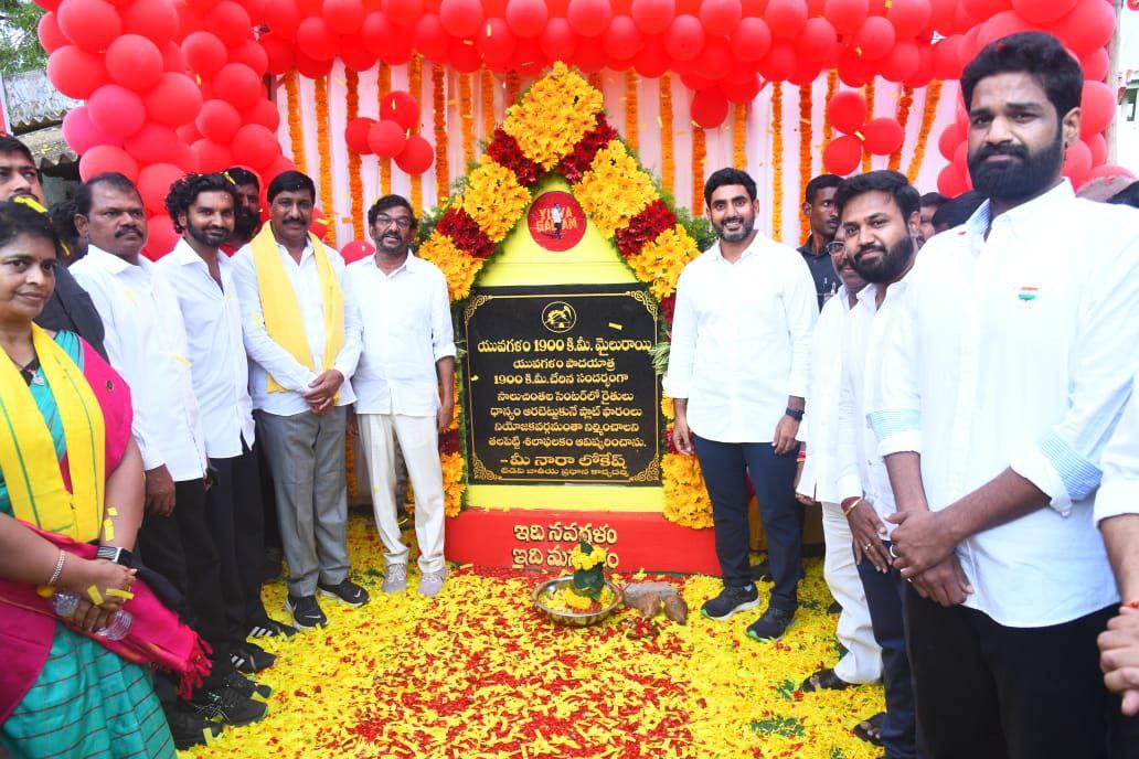 రాష్ట్రంలో అరాచకపాలనను అంతమొందించడమే లక్ష్యంగా నేను చేపట్టిన యువగళం పాదయాత్ర… జన ప్రభంజనంగా మారి లక్ష్యం దిశగా దూసుకుపోతోంది. కోవూరు నియోజకవర్గం సాలుచింతలలో పాదయాత్ర ఈరోజు 1900 కి.మీ. మైలురాయిని చేరుకోవడం సంతోషంగా ఉంది. అధికారంలోకి వచ్చాక రైతులు పండించిన ధాన్యాన్ని ఆరబెట్టుకోవడానికి కోవూరు నియోజకవర్గ వ్యాప్తంగా ప్లాట్ ఫారాలు నిర్మిస్తానని హామీ ఇస్తూ, శిలాఫలకాన్ని ఆవిష్కరించాను. దీనివల్ల ఈ ప్రాంత వరి రైతాంగం పండించిన ధాన్యం నాణ్యత మెరుగుపడి మార్కెట్ లో మంచి ధరకు విక్రయించుకోవడానికి అవకాశం కలుగుతుంది.