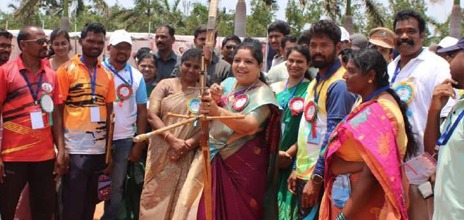 విశాఖపట్నం(చైతన్యరథం): గిరిజన సంక్షేమ శాఖ ఆధ్వర్యంలో శుక్రవారం విశా ఖపట్నంలో విలువిద్య(ఆర్చరీ) పోటీలను గిరిజన సంక్షేమ మంత్రి గుమ్మడి సంధ్యారా ణి ప్రారంభించారు. ఏపీతో పాటు ఒడిశా, కేరళ, మధ్యప్రదేశ్, రాజస్థాన్, తెలంగాణ, అండమాన్ నికోబార్ దీవుల నుంచి వచ్చిన విద్యార్థులు ఈ పోటీల్లో పాల్గొన్నారు. ఈ సందర్భంగా మాట్లాడుతూ గిరిజన యువత తమ సంప్రదాయ నైపుణ్యాన్ని ప్రదర్శించేందుకు ఇది ఒక గొప్ప వేదిక. వారి వేసిన చిత్రాలను చూసి అందరూ ప్రశంసిస్తారు. మన చంద్రన్న ప్రభుత్వం గిరిజనుల అభివృద్ధి, సంక్షేమం కోసం కృషి చేస్తుందని తెలిపారు. రాష్ట్రంలోని 27.39 లక్షల గిరిజనుల (ఎస్టీ) సమగ్ర సామా జిక-ఆర్థిక అభివృద్ధికి కట్టుబడి ఉంది. రాష్ట్రంలో మొత్తం 34 షెడ్యూల్డ్ తెగలు, వాటిలో 11 ప్రత్యేకంగా బాధపడే తెగలు (పీవీటీజీలు) ఉన్నారు. వీరి అభివృద్ధి కోసం రాష్ట్ర, కేంద్ర ప్రభుత్వాలు పలు పథకాలు అమలు చేస్తూ అండగా ఉన్నాయని తెలి పారు.