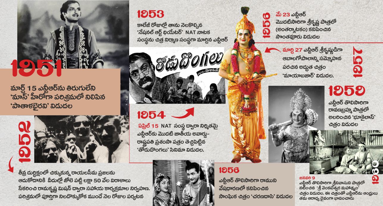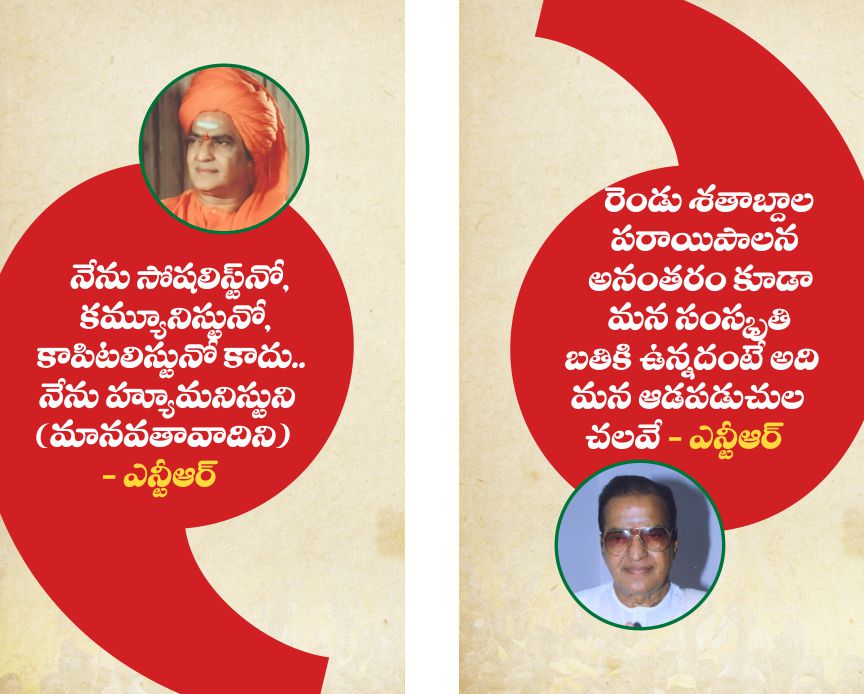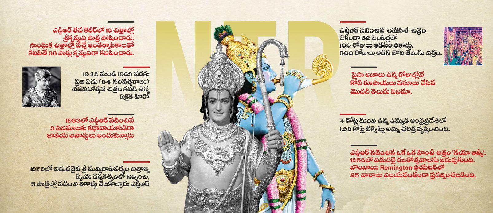 ఎన్టీఆర్... ఈ మూడక్షరాల పదం వింటే ప్రతి తెలుగు హృదయంలో తెలియని భావోద్వేగం ఉప్పొంగుతుంది. మిలీనియం తరానికి కూడా ఎన్టీఆర్ అన్న పేరు విన్నప్పుడల్లా... ఆ పేరుతో ఏదో కనెక్షన్ ఉన్నట్టుగా అనిపిస్తుంది. కారణం... వాళ్ళ ఇళ్లల్లోని సినీ అభిమానం కలిగిన ఒక తరం ఎన్టీఆర్ సినిమాల గురించి పరవశిస్తూ మాట్లాడుతుంది. పురాణం పురుషుల పాత్రల్లో దైవత్వం, సౌజన్యం, రాజసం, పరాక్రమం... వీటన్నిటినీ కనబరచిన ఎన్టీఆర్ తేజోమయ రూపాన్ని వర్ణిస్తూ మాట్లాడుతుంది. రాజకీయ చైతన్యం కలిగిన ఇంకో తరం ఎన్టీఆర్ రాజకీయ సంచలనాల గురించి... తెలుగుజాతి ఆత్మగౌరవాన్ని ఎన్టీఆర్ పరిరక్షించిన తీరు గురించి మాట్లాడుతుంది. పిల్లలకు స్ఫూర్తి పాఠాలు చెప్పాలనుకున్న మరో తరం