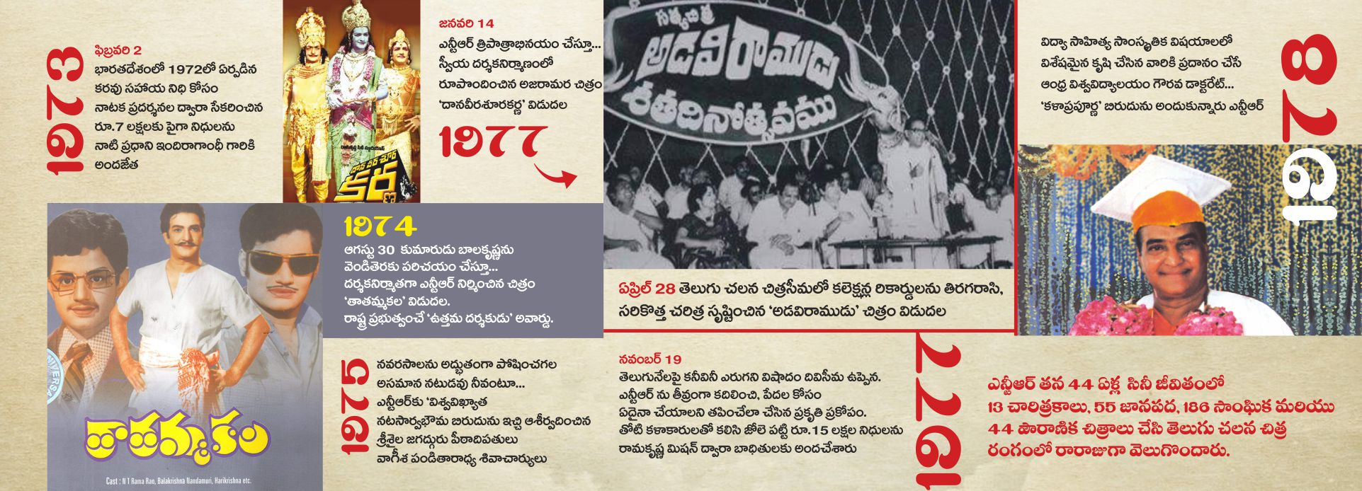 ఎవరైనా తన జీవితంలో ఏదో ఒక రంగంలో విజయవంతమవుతారు. కానీ మన ఎన్టీఆర్ ముప్పై మూడేళ్ళ సినీ జీవితంలో ఎన్నో రికార్డులు సృష్టించారు. ప్రశంసలు అందుకున్నారు. వెండితెర వేలుపుగా పూజలు అందుకున్నారు. విశ్వవిఖ్యాత నటసార్వభౌమునిగా కీర్తించబడ్డారు.