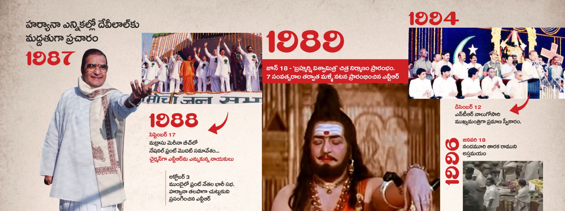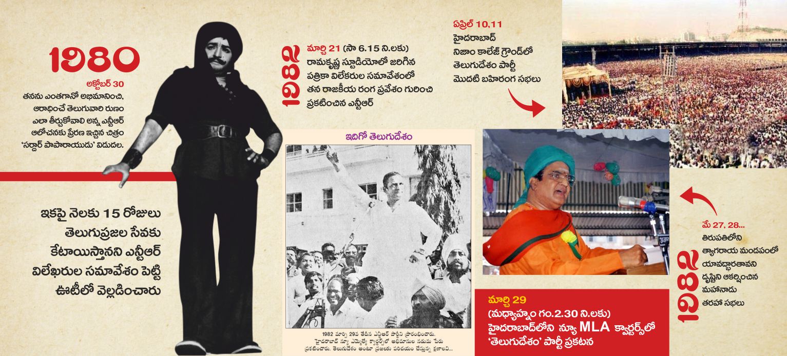 అటు తర్వాత తనను ఆదరించి అభిమానించిన తెలుగు ప్రజలకు సేవ చేసి వారి ఋణం తీర్చుకోడానికి ఆరుపదుల వయసులో రాజకీయాల్లోకి వచ్చి ఈ రంగంలోనూ అనితరసాధ్యమైన విజయాలను అందుకున్నారు. ప్రజల్లో రాజకీయ చైతన్యం రగిలించారు. బడుగులకు రాజ్యాధికారం ఇచ్చారు. మహిళలకు హక్కులు పంచారు. పేదలకు సంక్షేమం అందించారు. అందరికీ ఆప్తుడైన "అన్నగారు" అయ్యారు. 1996 జనవరి 18న ఎన్టీఆర్ అనే తెలుగు వెలుగు అస్తమించింది. అప్పటికి ఆయన వయసు 73 ఏళ్ళు మాత్రమే. ఈ వ్యవధిలోనే ఎన్టీఆర్ రెండు సంచలన జీవితాలు జీవించారు. తెలుగు వారు ఉన్నంత కాలం, తెలుగువారి చరిత్ర చెప్పుకున్నంత కాలం తన గురించి చెప్పుకునేలా తనకంటూ ఒక శకాన్ని సృష్టించుకున్న 'శక పురుషుడు' ఎన్టీఆర్.