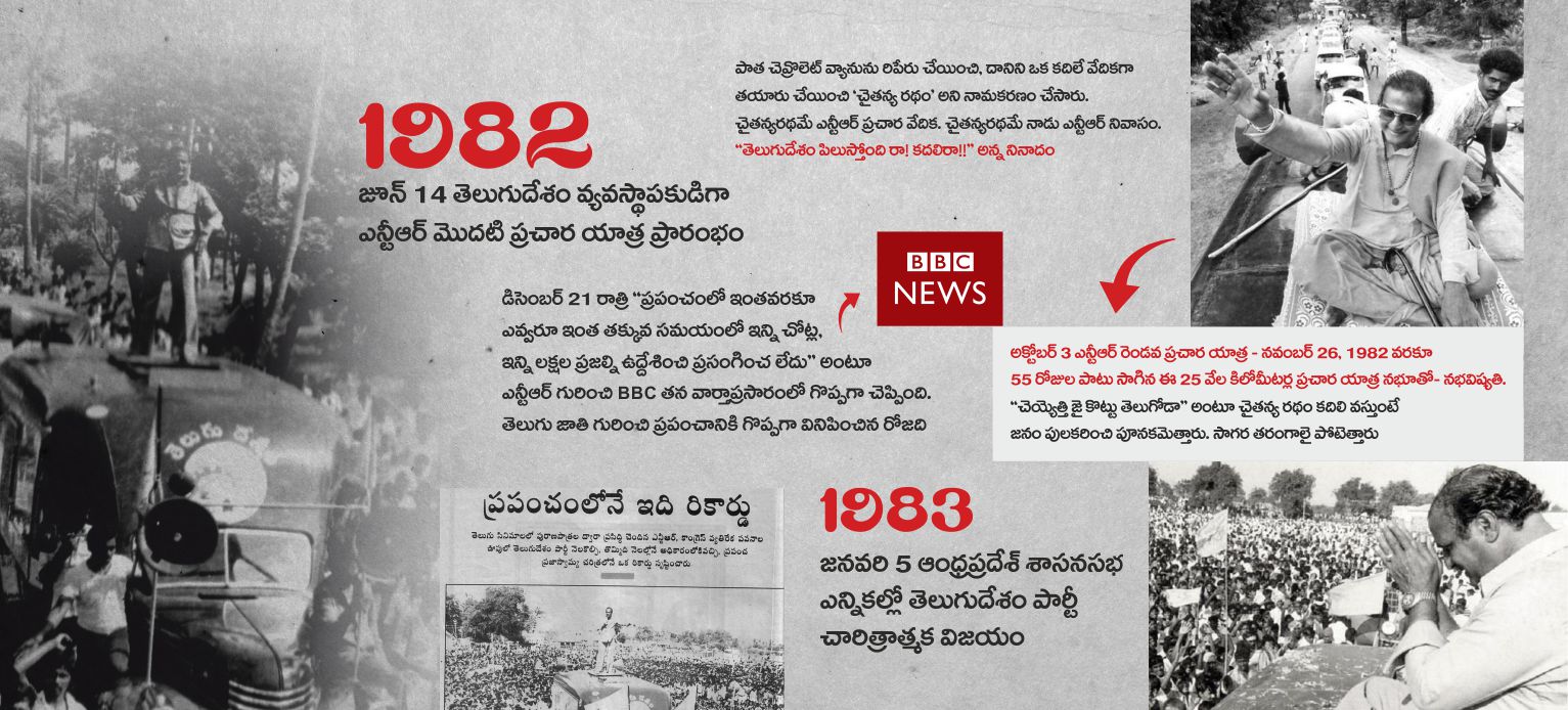 ఆయన స్థాపించిన తెలుగుదేశం పార్టీ ఆవిర్భవించింది 1982 మార్చి 29న అయినప్పటికీ... 'మహానాడు' పేరుతో పార్టీ పండుగ చేసుకునేది మాత్రం ఎన్టీఆర్ పుట్టినరోజైన మే 28న. పార్టీ శ్రేణులకు తమ ఆరాధ్య దైవం ఎన్టీఆర్ పుట్టిన రోజే అసలైన పండుగ. 2023 మే 28 నాటికి 'ఎన్టీఆర్' అనే కారణజన్ముని అవతరణకు వందేళ్లు నిండుతాయి. అందుకే 2022 మే 28 నుండి ఒక ఏడాది పాటు ఎన్టీఆర్ ను స్మరించుకుంటూ... ఎన్టీఆర్ ఘన చరిత్రను ముందు తరాలు తెలుసుకునేలా... ప్రపంచవ్యాప్త తెలుగువారంతా 'ఎన్టీఆర్ శతజయంతి' ఉత్సవాలు నిర్వహించాలని శ్రీ నారా చంద్రబాబు నాయుడు గారి అద్వర్యంలో తెలుగుదేశం పార్టీ పిలుపునిచ్చింది. ఆ ఉత్సవ విశేషాలను... ఎన్టీఆర్ జీవిత విశేషాలను... ఎన్టీఆర్ భావజాలాన్ని.. ఈ పేజీలో చూద్దాం.