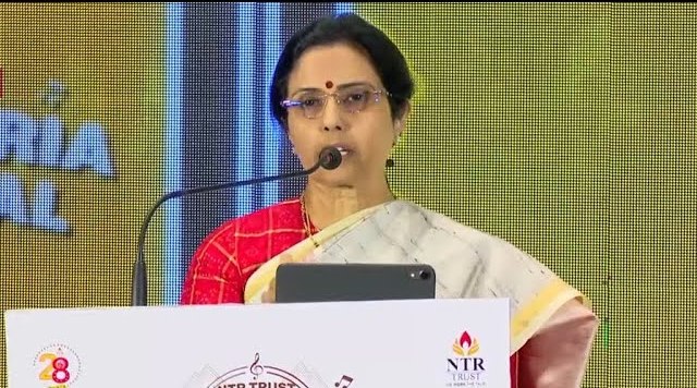 విజయవాడ (చైతన్యరథం): ప్రజాసేవకే ఎన్టీఆర్ ట్రస్ట్ అంకితం.. తలసేమియా వ్యాధిపై ప్రజలకు అవగాహన కల్పించి, ఆ వ్యాధితో బాధపడే బిడ్డలను ఆదుకోవాలనే సదుద్దేశంతోనే యూఫొరియా మ్యూజికల్ నైట్ నిర్వహిస్తున్నామని సీఎం చంద్రబాబు సతీమణి, ఎన్టీఆర్ ట్రస్ట్ మేనేజింగ్ ట్రస్టీ నారా భువనేశ్వరి అన్నారు. తలసేమియా బాధితుల సహాయార్థం ఏర్పాటు చేసిన మ్యూజికల్ నైట్కు మంచి మనసులు ఇంతలా స్పందించడం గొప్ప విజయం అన్నారు. సమాజంలో మంచి మిగిలే ఉంది.. మంచి పనికి ప్రజల మద్దతు ఉంటుంది అనడానికి ఇక్కడికి పెద్దసంఖ్యలో వచ్చిన వారే నిదర్శనమన్నారు. ఎన్టీఆర్ ట్రస్ట్ ఆధ్వర్యంలో విజయవాడలో శనివారం నిర్వహించిన యుఫోరియా మ్యూజికల్ నైట్లో భువనేశ్వరి మాట్లాడారు.