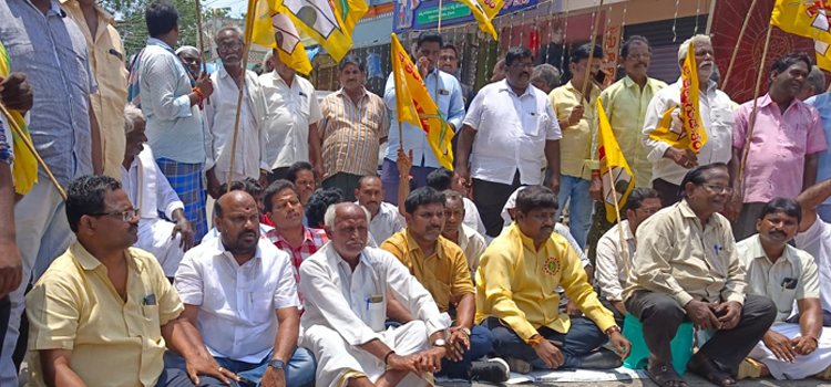పల్నాడు జిల్లా: క్రోసూరులో తమ షాపు ఎదురుగా రోడ్డుపై సామాన్లు పెట్టి వ్యాపారం చేస్తున్నాడని ఓ వ్యాపారి షాపునకు గ్రామకార్యదర్శి తాళం వేయడంతో తెలుగుదేశం పార్టీ శ్రేణులు మంగళవారం ఆందోళనకు దిగాయి. విషయం తెలుసుకున్న టిడిపి వాణిజ్య విభాగం రాష్ట్ర అధ్యక్షుడు డూండీ రాకేష్ హుటాహుటిన క్రోసూరు చేరుకొని శ్రేణులతో కలిపి రోడ్డుపై బైఠాయించారు. రోడ్డుమార్జిన్ కు ఆరుఅడుగుల లోపు ఉన్న కొట్టు ఉందని పూర్ణ అనే వ్యాపారి షాపునకు గ్రామ కార్యదర్శి తాళం వేశారు. కేవలం కక్షసాధింపు కోసమే ఇటు వంటి ఉన్మాద చర్యలకు దిగుతున్నారని టిడిపి వాణిజ్యవిభాగం రాష్ట్ర అధ్యక్షుడు డూండీ రాకేష్ ఆగ్రహం వ్యక్తంచేశారు. బాధితుడు పూర్ణను పరామర్శించిన రాకేష్ తెలుగుదేశం పార్టీ అండగా ఉంటుందని భరోసా ఇచ్చారు. ఆందోళనలో పాల్గొన్న కార్యకర్తలు ప్రభుత్వానికి వ్యతిరేకంగా నినాదాలు చేశారు.