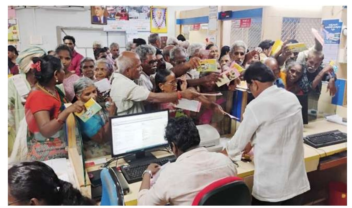 వృద్దులకు చాలా మందికి పేరుకే బ్యాంకు ఖాతాలు ఉన్నాయి కానీ అవి ఆపరేషన్లో లేవు. పెన్షన్ల కోసం అంటూ బ్యాంకు వెళితే డబ్బులివ్వాలంటే ఈ కేవైసీ కావాలని, ఆధార్ అనుసంధానం కావాలని, వేలిముద్రలు సరిగ్గా పడడం లేదంటూ వెనక్కి పంపించేశారు. ఇప్పటికిప్పుడు ఇవన్నీ ఇవ్వడం ఎలా సాధ్యమౌతుందని అవ్వాతాతలు ప్రశ్నించారు. ఇంటింటికి వచ్చి పెన్షన్ ఇచ్చే అవకాశం ఉన్నప్పటికీ రాజకీయ దురుద్దేశ్యంతో తమను ఇబ్బంది పెడుతున్న జగన్రెడ్డిపై దుమ్మెత్తి పోశారు. కాగా దాదాపు 75 వేల ఖాతాలకు మొబైల్ నెంబర్ అనుసంధానం కాలేదు. వీరందరికీ శనివారం నుండి సచివాలయాల్లోనే పంపిణీ చేయనున్నారు. కాగా గత నెల మాదిరే ఈసారి సచివాయాల్లోనే పెన్షన్లు పంపిణీ ఎందుకు చేయలేదని వృద్ధులు ప్రశ్నిస్తున్నారు. పెన్షన్లు తీసుకోవడానికి పది నుండి ఇరవై కిలో మీటర్ల దూరంలో ఉన్న బ్యాంకుల వద్దకు ఎలా రాగలమని 70 ఏళ్ల పైన వయస్సు ఉన్న వృద్దులు అడుగుతున్నారు. తాము వచ్చి అడిగినా వెంటనే బ్యాంకు అధికారులు పెన్షన్ ఇవ్వడం లేదని, మళ్లీ రమ్మంటున్నారని, పదే పదే తిరగడానికే పెన్షన్ డబ్బులు ఖర్చయిపోతున్నాయిని ఆందోళన వ్యక్తం చేశారు. బ్యాంక్ ఖాతాలో మినిమం బ్యాలెన్స్ ఉండాలంటూ 500 రూపాయలు కట్ చేసుకొని 2,500 రూపాయలే ఇస్తున్నారని మరికొంతమంది వృద్ధులు చెప్పారు. మొత్తంగా జగన్రెడ్డి తన రాజకీయ ప్రయోజనాల కోసం పండుటాకులను నానా యాతలకు గురి చేస్తున్నాడు. వీరంతా ఈనెల 13న జరగనున్న ఎన్నికల్లో వైసీపీకి తగిన గుణపాఠం చెప్పనున్నారు.