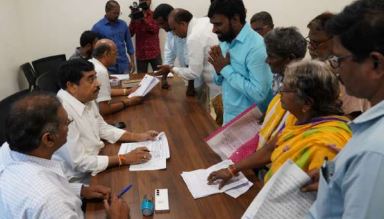 మంగళగిరి(చైతన్యరథం): తమపై పెద్దిరెడ్డి, వారి అనుచరులు అక్రమ కేసులు పెట్టి హింసించి గత ఎన్నికల్లో టీడీపీ తరపున ఎలక్షన్ ఏజెంట్లుగా పనిచేయకుండా తమను కిడ్నాప్ చేసి చిత్రహింసలకు గురిచేశారని చిత్తూరు జిల్లా సదుం మండలానికి చెందిన జి.సుబ్బరాజు, ఎల్లప్ప ఆవేదన వ్యక్తం చేశారు. పోలీసులకు ఫిర్యాదు చేసినా పట్టించు కోలేదని సోమవారం టీడీపీ కేంద్ర కార్యాలయంలో ప్రజా వినతుల కార్యక్రమంలో ఫిర్యా దు చేశారు. నేటికీ స్థానిక పోలీసులు, అధికారులు పెద్దిరెడ్డి కుటుంబానికి తొత్తులుగా పనిచేస్తున్నారని.. కేసులు పెట్టినా పట్టించుకోవడం లేదని తెలిపారు. టీడీపీ సానుభూతి పరుల సమస్యలంటేనే పక్కన పెడుతున్నారని వివరించారు. దీనిపై విచారించి ఆ అధి కారులపై చర్యలు తీసుకుని న్యాయం చేయాలని కోరారు. మాజీ రాజ్యసభ సభ్యులు కంభంపాటి రామ్మోహన్రావు, ఎమ్మెల్సీ పరుచూరి అశోక్బాబు, బ్రాహ్మణ సాధికార సమి తి కన్వీనర్ బుచ్చిరాంప్రసాద్ అర్జీలు స్వీకరించారు.