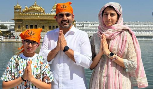 అమృత్సర్ (చైతన్యరథం): సిక్కులను అతి పవిత్రమైన పంజాబ్లోని అమృత్సర్ స్వర్ణ దేవాలయంని సందర్శించి, అందరూ సుఖశాంతులతో, ఆయురారోగ్యాలతో ఆనందంగా ఉండాలని ప్రార్థించానని విద్య, ఐటీ శాఖల మంత్రి నారా లోకేష్ పేర్కొన్నారు. ఆదివారం ఉదయం అమృత్సర్ చేరుకున్న మంత్రి లోకేష్ కుటుంబ సమేతంగా స్వర్ణ దేవాలయాన్ని సందర్శించారు. అమృత్సర్లోని పవిత్ర హర్మందిర్ సాహిబ్ను సందర్శించే భాగ్యం దొరకడం చాలా సంతోషంగా ఉందని అనంతరం లోకేష్ పేర్కొన్నారు. స్వర్ణ దేవాలయం ఆవరణలో గడిపిన సమయం ఆధ్యాత్మిక ప్రశాంతతను చేకూర్చిందన్నారు. మంత్రి లోకేష్తో పాటు భార్య బ్రాహ్మణి, తనయుడు దేవాన్ష్లు స్వర్ణ దేవాలయంలో కొలను, లంగర్ను సందర్శించారు. కాగా, స్వర్ణ దేవాలయ సందర్శన సందర్భంగా లోకేశ్, బ్రాహ్మణి, దేవాన్ష్ సిక్కు మతాచారాల ప్రచారం తలకు పవిత్రమైన వస్త్రాన్ని కట్టుకుని ప్రార్థనల్లో పాల్గొన్నారు.