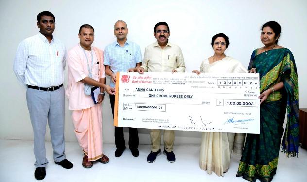 అమరావతి (చైతన్యరథం): రాష్ట్రంలో గురువారం నుండి ప్రారంభంకానున్న అన్నక్యాంటీన్లకు ముఖ్యమంత్రి నారా చంద్రబాబు నాయుడు సతీమణి భువనేశ్వరి రూ. 1 కోటి విరాళం అందించారు. ఎన్టీఆర్ ట్రస్ట్ తరపున రూ.1 కోటి విరాళానికి సంబంధించిన చెక్కును ఉండవల్లి నివాసంలో మున్సిపల్ శాఖా మంత్రి పొంగూరు నారాయణకు భువనేశ్వరి అందించారు. పేదల కడుపునింపేందుకు ప్రభుత్వం ఏర్పాటు చేస్తున్న అన్నక్యాంటీన్లు ఎంతో గొప్ప కార్యక్రమం అని ఈ సందర్భంగా భువనేశ్వరి అన్నారు. పేదవాడికి కూడు, గూడు, గుడ్డ అనేది స్వర్గీయ ఎన్టీఆర్ నినాదమని ఆమె గుర్తు చేశారు. ఎన్టీఆర్ స్ఫూర్తితో పేదల ఆకలి తీర్చడానికి తలపెట్టిన ఈ కార్యక్రమానికి తన వంతు మద్దతుగా నిలవాలనే ఉద్దేశ్యంతో విరాళం అందించినట్లు పేర్కొన్నారు. రూ.5 లకే కడుపు నింపడం అనేది ఎంతో గొప్ప కార్యక్రమం అని, పేదలకు, రోజు కూలీలకు, కార్మికులకు అన్న క్యాంటీన్లు ఎంతో ఉపయోగపడతాయని భువనేశ్వరి అభిప్రాయపడ్డారు. పేదల జీవన ప్రమాణాలు పెరిగేలా సంక్షేమ పథకాలు అందిస్తున్న ప్రభుత్వానికి భువనేశ్వరి ధన్యవాదాలు, అభినందనలు తెలిపారు. ఎన్ని సంక్షేమ పథకాలున్నా పేదల కడుపు నింపే అన్నక్యాంటీన్ లాంటి కార్యక్రమం మహోన్నతమైనదన్నారు. పేదల సేవలో మరిన్ని మంచి కార్యక్రమాలు ప్రభుత్వం చేపట్టాలని భువనేశ్వరి ఆకాంక్షించారు.
