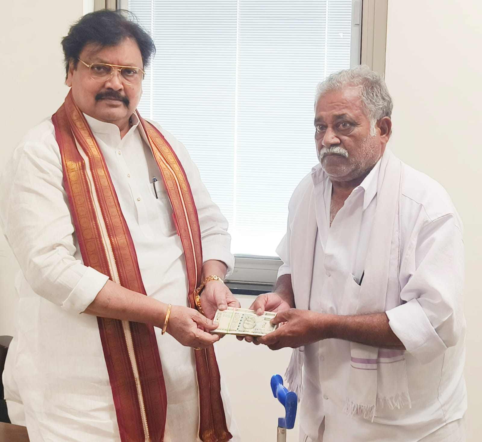 మంగళగిరి(చైతన్యరథం): అనారోగ్య సమస్యలతో బాధపడుతున్న అన్నమయ్య జిల్లా టి.సుండుపల్లి మండలం తిమ్మసముద్రం గ్రామానికి చెందిన టీడీపీ సీనియర్ నాయకు డు పర్చూరి మోహన్నాయుడుకు మంగళవారం పార్టీ లక్ష ఆర్థిక సాయం అందజేసింది. టీడీపీ కేంద్ర కార్యాలయంలో ఇటీవల నిర్వహించిన ప్రజా వినతుల కార్యక్రమంలో తాను ఆనారోగ్య సమస్యలతో బాధపడుతున్నానని.. దయచేసి సాయం చేసి ఆదుకోవా లని ముఖ్యమంత్రి చంద్రబాబుకు అర్జీ ఇచ్చి అభ్యర్థించారు. దాంతో స్పందించిన టీడీపీ పార్టీ పొలిట్బ్యూరో సభ్యుడు వర్ల రామయ్య చేతులమీదుగా రూ.లక్ష ఆర్థికసాయం అందజేశారు.