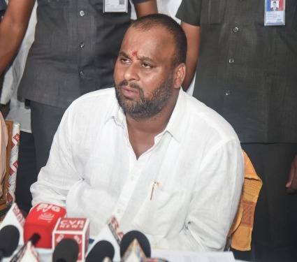 విజయవాడ: అమరావతిలోని తన క్యాంపు కార్యాలయంలో శుక్రవారం రవాణా, యువజన, క్రీడా శాఖ మంత్రి మండిపల్లి రాంప్రసాద్రెడ్డిని శుక్రవారం రవాణా శాఖ కమిషనర్ మనీష్కుమార్ సిన్హా మర్యాదపూర్వకంగా కలిసి శుభాకాంక్షలు తెలిపారు. ఈ సందర్భంగా మంత్రి ఆ శాఖకు సంబంధించిన పలు ముఖ్యమైన విషయాలను అడిగి తెలు సుకున్నారు. చెక్పోస్టులను పునరుద్ధరించి కరెన్సీ, మద్యం, ఇతర వస్తువుల అక్రమ రవాణాను నిరోధించాలని సూచించారు. గంజాయి, ఇతర మాదక ద్రవ్యాలను నిషేధం.. అక్రమ రవాణాను అరికట్టేలా చర్యలు తీసుకోవడంపై చర్చించారు. స్మగుల్ గూడ్స్/ప్రజా పంపిణీ సరుకుల అక్రమ రవాణా నియంత్రణ, సరిహద్దులు పంచుకునే రాష్ట్రాలు, చెక్ పోస్టులను కట్టుదిట్టం చేయడం, రవాణా శాఖలో నష్టాన్ని నియంత్రించి ఆదాయం పెంచడం, అంత రాష్ట్ర రవాణా ఒప్పందాలు, విభజన సమస్యలు ఏవైనా ఉంటే వాటిని ఏ విధంగా అధిగమించాలి అనే అంశాలపై సూచనలు చేశారు. పాఠశాలలు, కళాశాలల వాహనాల ఫిట్నెస్ సర్టిఫికెట్లను సంబంధిత అధికారులు ర్యాండమ్గా తనిఖీ చేసి చర్యలు తీసుకోవాలని తెలిపారు. ప్రమాద రహిత రాష్ట్రంగా చేయడం, ప్రైవేట్ ట్రాన్స్పోర్ట్ ఆపరేటర్లపై తనిఖీలు నిర్వహించి పొరపాట్లు ఉంటే తక్షణమే చర్యలు తీసుకోవడం వంటి అంశాలపై కూడా చర్చించారు.