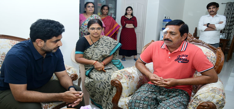 హైదరాబాద్‌: వైసీపీ రౌడీమూకల దాడిలో తీవ్రం గా గాయపడిన టిడిపి రాష్ట్ర కార్యదర్శి చెన్నుపాటి గాంధీని హైదరాబాద్‌లో టిడిపి జాతీయ ప్రధాన కార్య దర్శి నారా లోకేష్‌ పరామర్శించారు. కంటికి జరుగుతున్న చికిత్స గురించి ఆరా తీశారు. అన్ని విధాలా పార్టీ అండగా వుంటుందని లోకేష్‌ హామీ ఇచ్చారు. అధైర్యపడొద్దని త్వరగా కోలుకుంటారని ఆకాంక్షించారు. మీకు అండగా 60లక్షల మంది కార్యకర్తలు ఉన్నారని భరోసాని ఇచ్చారు. మీపై దాడిచేసిన వారిని వదిలే ప్రసక్తిలేదు. ఈ సంఘటనలో ఉన్నవారు ఎంతటివారైనా న్యాయస్థానం ముందు దోషులుగా నిలబెడతామని లోకేష్‌ పేర్కొన్నారు.