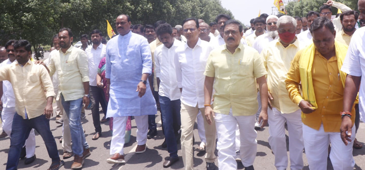 అమరావతి : కుప్పంలో వైసిపి మూకలు అన్న క్యాంటీన్‌ విధ్వంసం చేయడం, టిడిపి కార్యకర్తలపై దాడికి దిగిన ఘటనపై తెలుగుదేశం పార్టీ శ్రేణుల్లో ఆగ్రహం కట్టలు తెంచుకుంది. టీవీల్లో ఘటన విషయం తెలుసుకున్న కార్యకర్తలు, నాయకులు పెద్దఎత్తున పార్టీ కేంద్ర కార్యాలయం వద్దకు చేరుకున్నారు. రాష్ట్ర అధ్యక్షుడు కింజరాపు అచ్చెన్నాయుడు నేతృత్వంలో పార్టీశ్రేణులు ప్రదర్శనగా వెళ్లి డీజీపి కార్యాలయాన్ని ముట్టడిరచారు. వైసిపి మూకల దుశ్చర్యపై ఆగ్రహంతో ఊగిపోయిన పార్టీశ్రేణులు ఒకానొక దశలో డీజీపీ ఆఫీసు మెయిన్‌ గేటును తోసుకొని లోపలకు చొచ్చుకెళ్లే ప్రయత్నం చేశారు. వారిని అదుపుచేయడం అచ్చెన్నాయుడు, ఇతర సీనియర్‌ నేతలవల్ల కాలేదు. సిఎం డౌన్‌ డౌన్‌, పోలీసుల వైఖరి నశించాలంటూ పెద్దఎత్తున నినాదాలు చేశారు. విషయం తెలుసుకున్న పోలీసులు పెద్దఎత్తున డీజీపీ కార్యాలయం వద్ద మొహరించాయి. రాష్ట్ర అధ్యక్షుడు అచ్చెన్న, ఇతర ముఖ్యనేతలు కార్యకర్తలతో కలిసిపోయి డీజీపీ ఆఫీసు ఎదుట సుమారు రెండుగంటలపాటు బైఠాయించారు. ఆ తర్వాత కుప్పం ఘటనకు బాధ్యులైన వారిపై చర్యలు తీసుకోవాలంటూ డీజీపీ కార్యాలయ సిబ్బందికి వినతిపత్రం సమర్పించి పాద యాత్రగా కేంద్ర కార్యాలయానికి బయలుదేరారు. డీజీపీ ఆఫీసు ఎదుట ఆందోళనలో పార్టీ జాతీయ అధికార ప్రతినిధి గురజాల మాల్యాద్రి, ఎమ్మెల్సీలు పరుచూరి అశోక్‌బాబు, దువ్వారపు రామారావు, మాజీమంత్రి పీతల సుజాత, బోండా ఉమ,గిడ్డీ ఈశ్వరి, తెనాలి శ్రావణ్‌కుమార్‌, ద్వారపురెడ్డి జగదీష్‌,కురగుళ్ల రామకృష్ణ,మెంటే పార్థసారథి, ఎస్సీ సెల్‌ అధ్యక్షుడు ఎంఎస్‌ రాజు, టీఎన్‌టీయూసీ రాష్ట్ర అధ్యక్షుడు రఘురామరాజు, నాదెండ్ల బ్రహ్మం, పార్టీ నేతలు కోవెలమూడి రవీంద్ర, మన్నవ మోహనకృష్ణ, జీవీ నాగేశ్వరరావు, బొద్దులూరి వెంకటేశ్వరరావు, పోతినేని శ్రీనివాసరావు, సయ్యద్‌ రఫీ, అనపర్తి శ్రీనివాస్‌, రాయపాటి సాయికృష్ణ, సుఖవాసి శ్రీనివాస్‌, బుచ్చి రాంప్రసాద్‌, బొప్పూడి వెంగలరావు, యార్లగడ్డ వెంకన్నచౌదరి,దామా మహేష్‌,పరుచూరి కృష్ణ,పేరయ్య పాల్గొన్నారు.