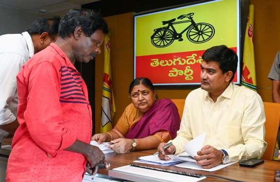 అతి నికృష్ట, నీచ, పైశాచిక పాలనలో మూగవోయిన బాధితుల గొంతులకు స్వేచ్ఛ లభించింది. గతంలో పాపాల పెద్దిరెడ్డి రామచంద్రారెడ్డి నుండి వైసీపీ పిల్ల సైకోల వరకు కొనసాగించిన దందాలు, దౌర్జన్యాలు, భూ ఆక్రమణలపై బాధితులు లబోదిబోమంటూ.. న్యాయం కోసం నేడు కూటమి నేతలు, అధికారుల వద్దకు క్యూ కడుతున్నారు. అధికారం చేపట్టిన మొదటి రోజు నుండే ప్రజా సమస్యలపై ప్రత్యేక దృష్టి పెట్టిన ప్రభుత్వం.. ప్రజల నుండి వినతుల స్వీకరణకు శ్రీకారం చుట్టింది. అందుకోసం ప్రత్యేక టోల్ ఫ్రీ నెంబర్ ను పెట్టింది. అంతే కాకుండా.. ప్రతి శనివారం నేరుగా సీఎం చంద్రబాబు నాయుడే ప్రజలకు అందుబాటులో ఉండి ప్రజల సమస్యలను వింటున్నారు. మరోపక్క మంత్రులు, నాయకులు ప్రతిరోజు పార్టీ జాతీయ కార్యాలయంలో అందుబాటులో ఉంటూ ప్రజల నుండి వినతులు స్వీకరించి వారి సమస్యల పరిష్కారానికి కృషి చేస్తున్నారు. ఈ మేరకు సోమవారం మంగళగిరిలోని టీడీపీ జాతీయ కార్యాలయంలో… రాష్ట్ర ఎంఎస్ఎంఈ, సెర్ప్, ఎన్ఆర్ఐ సాధికారత సంబంధాల శాఖ మంత్రి కొండపల్లి శ్రీనివాస్, టీడీపీ జాతీయ ఉపాధ్యక్షురాలు పనబాక లక్ష్మి అర్జీదారుల నుండి వినతులు స్వీకరించారు.