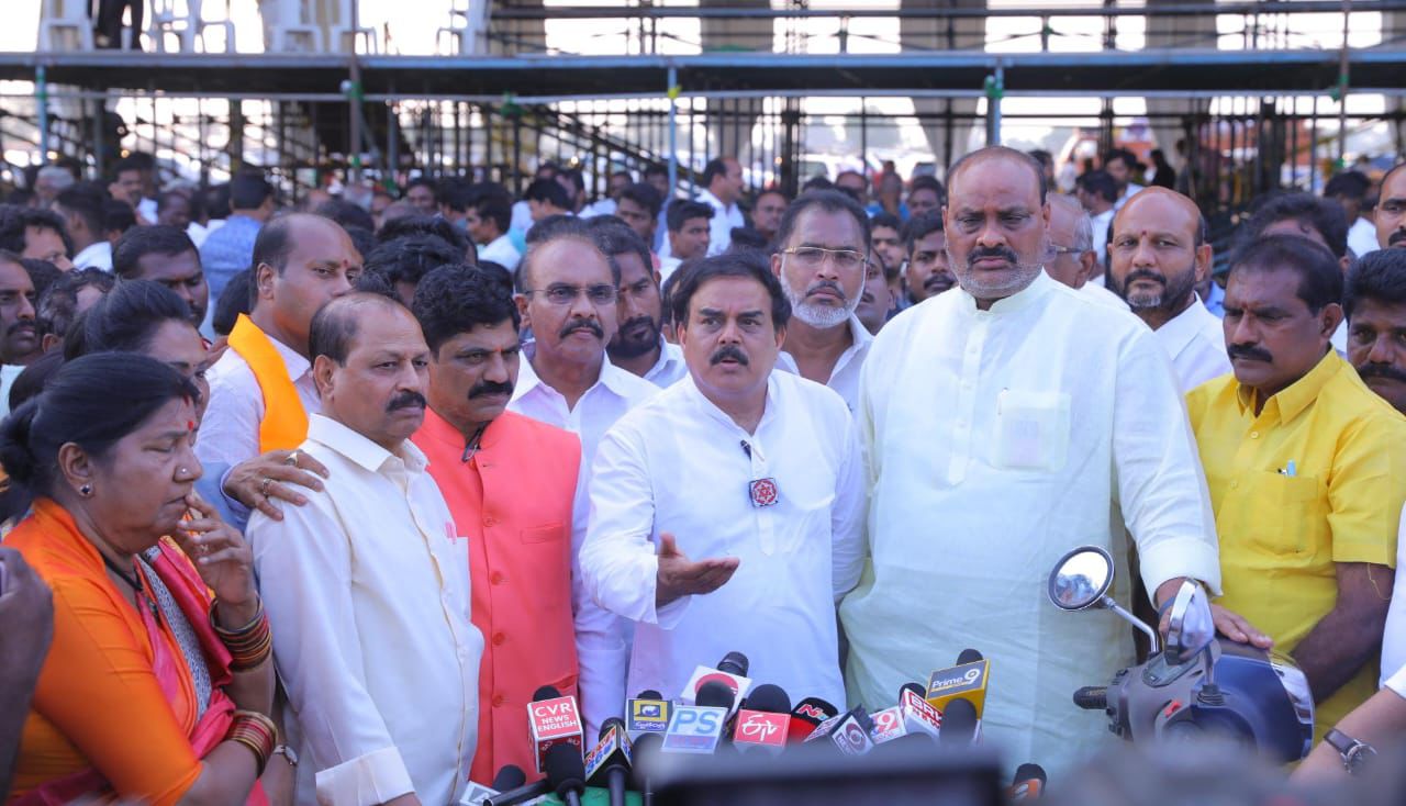 - శ్రీ సభా ప్రాంగణంలో ఏర్పాట్లు పరిశీలించిన అచ్చెన్నాయుడు, మనోహర్, పాతూరి, నేతలు