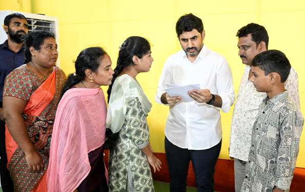 అమరావతి(చైతన్యరథం): ఆపదలో ఉన్నవారికి అండగా నిలుస్తున్న విద్య, ఐటీ, ఎలక్ట్రానిక్స్ శాఖల మంత్రి నారా లోకేష్ ‘ప్రజాదర్బార్’కు విన్నపాలు వెల్లువెత్తుతూనే ఉన్నాయి. ఉండవల్లిలోని నివాసంలో 23వ రోజు శుక్రవారం నిర్వహించిన ‘ప్రజాదర్బార్’ కు మంగళగిరితో పాటు రాష్ట్రవ్యాప్తంగా ప్రజలు పెద్దఎత్తున తరలివచ్చారు. ప్రతి ఒక్కరి వినతిని స్వీకరించిన మంత్రి.. అండగా ఉంటామని భరోసా ఇచ్చారు. ఆయా సమస్యలను శాఖలవారీగా విభజించి పరిష్కరించాలని సిబ్బందికి ఆదేశాలు జారీ చేశారు.