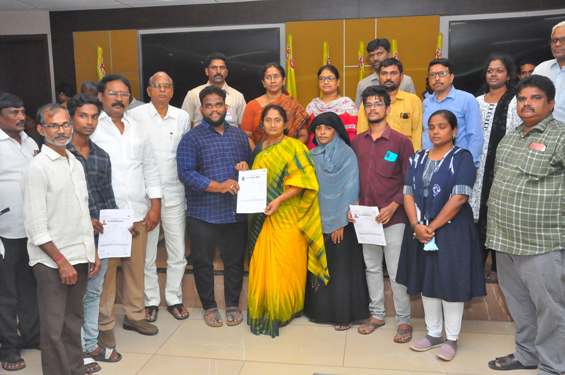 మంగళగిరి(చైతన్యరథం): తెలుగుదేశం ఎంపవర్మెంట్ సెంటర్లో శిక్షణ పొందిన ముగ్గురు విద్యార్థులు గల్ఫ్ దేశాల్లో ఉద్యోగాలు పొందారు. ఉద్యోగాలు పొందిన వారిలో ఈపూరి హరీష్బాబు (గుంటూరు), షేక్ వలి (బాపట్ల), చింతా హరినాథ్ (యలమంచిలి) ఉన్నారు. వీరంతా ఎలక్ట్రిషియన్ కోర్సులో ఉచితంగా శిక్షణ పొంది ఉద్యోగాలు సాధిం చా రు. ఈ సందర్భంగా మంత్రి సవిత బుధవారం మంగళగిరి టీడీపీ కేంద్ర కార్యాల యంలో నియామక పత్రాలు అందచేసి వారిని అభినందించారు. ముఖ్యమంత్రి చంద్రబాబు పేరు నిలబెట్టేలా పనిచేయాలని కోరారు. ఈ కార్యక్రమంలో టీడీపీ బ్రాహ్మణ సాధికారిత విభాగం స్టేట్ కో ఆర్డినేటర్ కె.బుచ్చిరాంప్రసాద్, బీసీ వేల్పేర్ విభాగం కో ఆర్డినేటర్ వి.గురుమూర్తి, టీడీపీ ఎంపవర్మెంట్ సెంటర్ ట్రైనింగ్ కో ఆర్డినేటర్ యామిని, ట్రైనర్లు వి.భాను, అధికారి ఉమామహేశ్వరి, ప్రతినిధులు డి.వి.రావు, డోమ్నిక్ పాల్గొన్నారు.