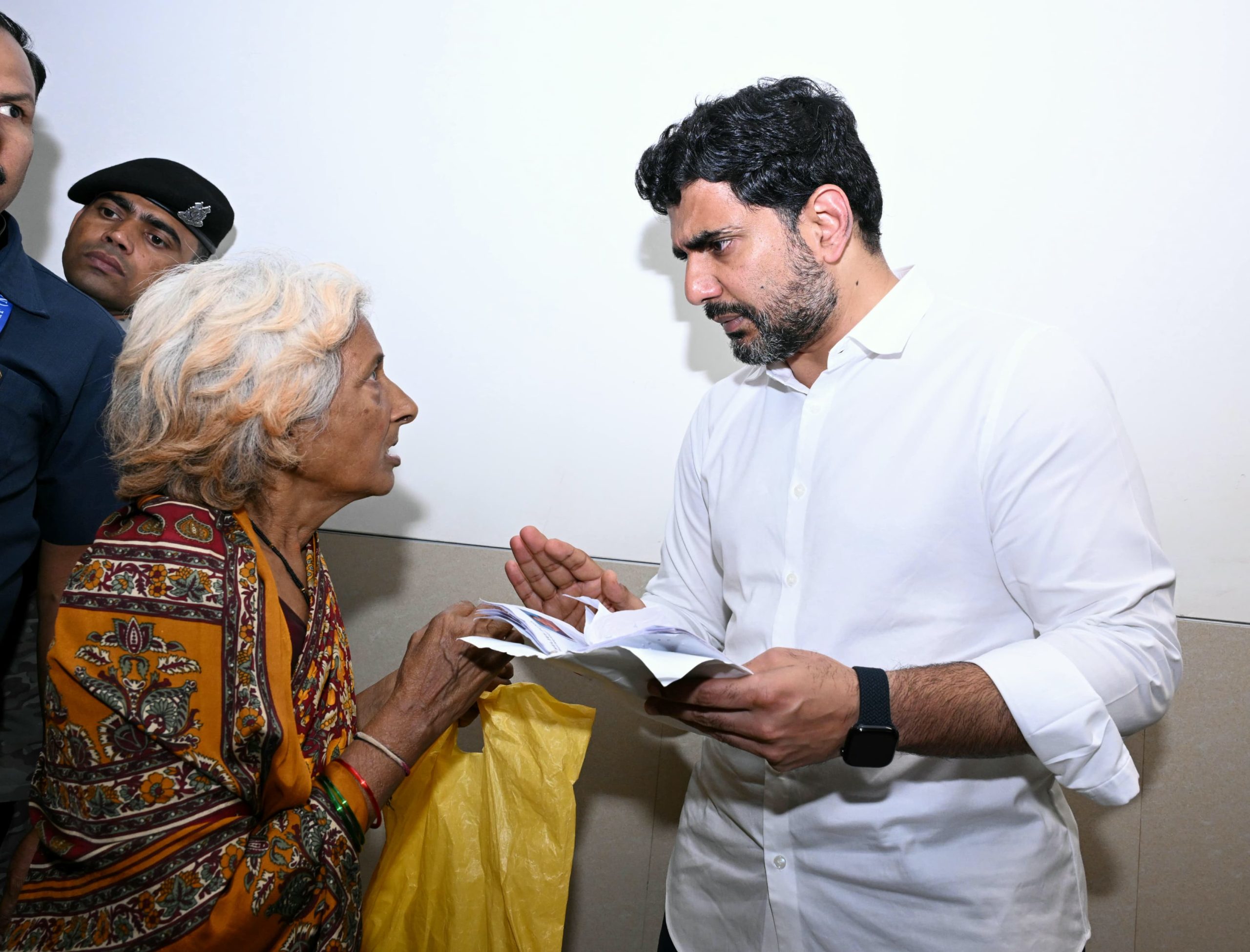 అమరావతి (చైతన్యరథం): టీడీపీ కేంద్ర కార్యాలయంలో శుక్రవారం సామాన్యులు, పార్టీ కార్యకర్తల నుంచి రాష్ట్ర విద్య, ఐటీశాఖల మంత్రి నారా లోకేష్ వినతులు స్వీకరించి, సమస్యల పరిష్కారానికి కృషి చేస్తానని హామీ ఇచ్చారు. పొలిట్బ్యూరో సమావేశం అనంతరం మంత్రి లోకేష్ కేంద్ర కార్యాలయంలో పార్టీ నాయకులు, కార్యకర్తలు, ప్రజలను కలుసుకుని వారు ఎదుర్కొంటున్న సమస్యలపై వినతి పత్రాలు స్వీకరించారు.