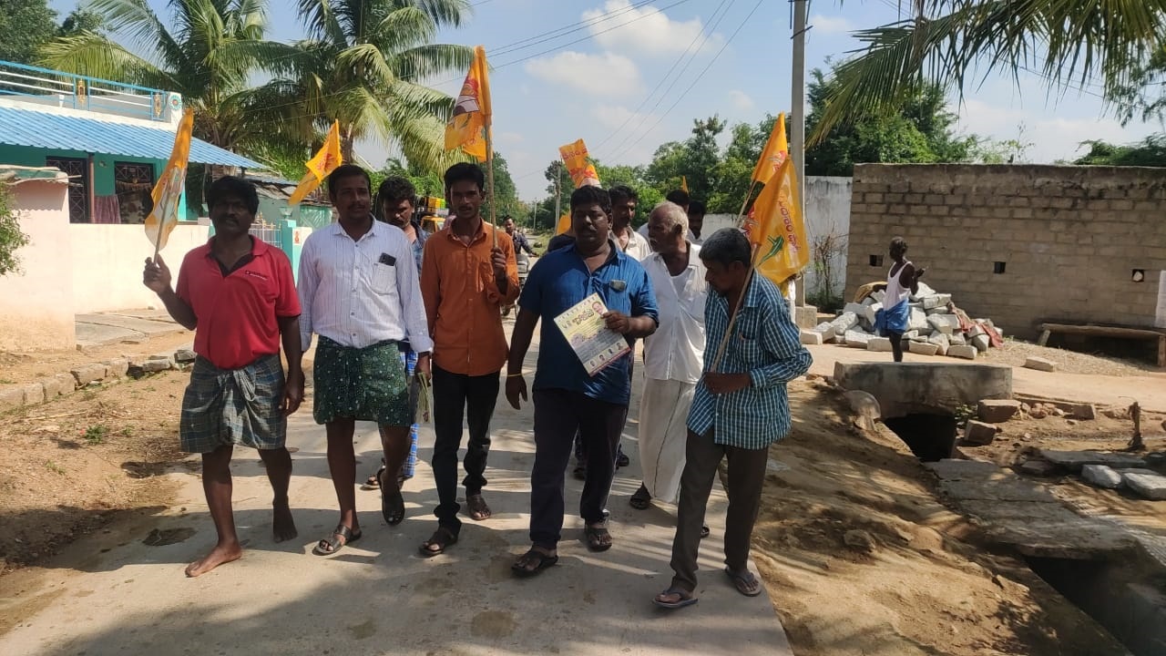 మదనపల్లి: అసమర్థుడి పాలనలో రాష్ట్రంలో అన్ని రంగాలు నాశనమయ్యాయని మదనపల్లి మాజీ ఎమ్మెల్యే దొమ్మలపాటి రమేష్ విమర్శలు చేశారు. నిమ్మనపల్లి మండలం అగ్రహారం గ్రామంలో ఏర్పాటు చేసిన జగనన్న బాదుడే బాదుడు కార్యక్రమానికి దొమ్మలపాటి రమేష్ హాజరయ్యారు. గ్రామంలో వీధివీధికి తిరుగుతూ కరపత్రాలు పంపిణీ చేశారు. ప్రజలను మోసం చేస్తూ మోసపూరిత నవరత్న పథకాలు పెట్టాడని విమర్శించారు. రాష్ట్రాన్ని 30 సంవత్సరాలు వెనక్కి తోశాడని వ్యాఖ్యానించారు. ఈ కార్యక్రమం లో టీడీపీ నాయకులు, మండలం క్లస్టర్ ఇంచార్జ్, మాజీ జడ్పీటీసీ మునిరత్నం, టీడీపీ మండల అధ్యక్షులు పుర్రా వెంకటరమణ, యువత అధ్యక్షులు చినబాబు, ఐటీడీపీ అధ్యక్షులు గోపి, గ్రామ అధ్యక్షులు రామచంద్ర, చంద్ర, నరేంద్ర, కేశవ, భూపతి, సూరి, మాబులు, సైదాపేట బాబు, అగ్రహారం గ్రామ టీడీపీ నాయకులు, కార్యకర్తలు పాల్గొన్నారు.
