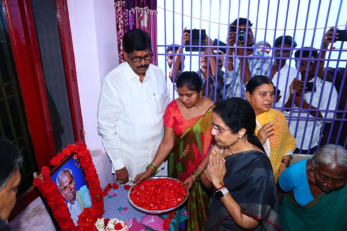 అనంతరం వెంకటగిరి నియో జకవర్గం, రాపూరు మండలం,శానాయపాలెం గ్రామం లో పార్టీ కార్యకర్త సన్నిబోయిన కృష్ణయ్య కుటుంబాన్ని భువనేశ్వరి పరామర్శించారు. కృష్ణయ్య(54), గత ఏడా ది అక్టోబర్ 9న గుండెపోటుతో మృతిచెందారు. కృష్ణ య్య భార్య సుబ్బరత్తమ్మ, కుమారుడు శ్రీనివాసులు, కుమార్తెలు అన్నపూర్ణ, శ్రీలత, సులోచన, కుటుంబ సభ్యులను భువనేశ్వరి పరామర్శించి, ఓదార్చారు. వారి యోగక్షేమాలు అడిగి తెలుసుకున్నారు. రూ.3లక్షల చెక్కు ఇచ్చి ఆర్థిక సాయం చేశారు. పర్యటన పూర్తిచేసుకున్న భువనేశ్వరి రేణిగుంట విమానాశ్రయానికి చేరుకుని అక్కడి నుండి హైదరాబాద్కు తిరుగుపయనమ య్యారు.