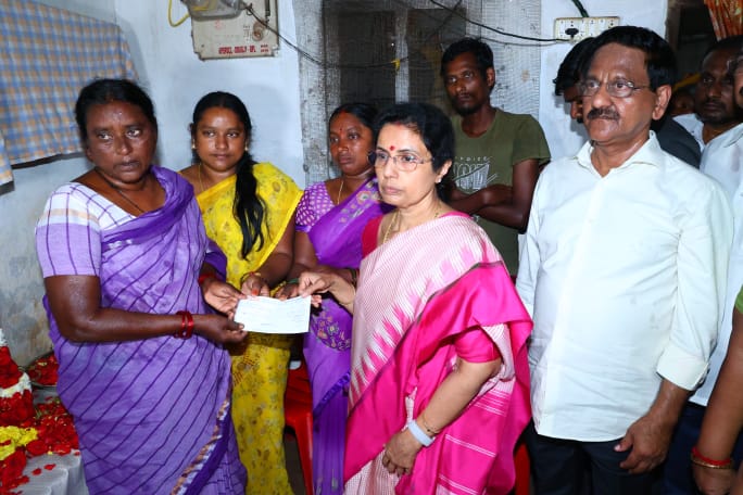 నెల్లూరు: తెలుగుదేశంపార్టీ జాతీయ అధ్యక్షుడు నారా చంద్రబాబునాయుడు అక్రమ అరెస్టుతో మనస్తాపానికి గురై చనిపోయిన పార్టీ కార్యకర్తల కుటుంబాలను పరామర్శించిన ఆయన సతీమణి భువనేశ్వరి.. ‘మేమున్నాం..అధైర్యపడొద్దు’’ అని ధైర్యం చెప్పారు. నిజం గెలవాలి కార్యక్రమం కందుకూరు, ఉదయగిరి, నెల్లూరు రూరల్ నియోజకవర్గాల్లో గురువారం జరిగింది. స్కిల్ డెవలప్మెంట్ కేసులో చంద్రబాబు అక్రమ అరెస్టు సమయంలో కలత చెంది గుండె పగిలి చనిపోయిన కార్యకర్తల కుటుంబాలను భువనేశ్వరి పరామర్శించారు. కందుకూరు ఆలా వారి కళ్యాణమండపం వద్ద విడిది కేంద్రం నుండి ప్రారంభమైన భువనేశ్వరి మొదటగా కందుకూరు నియోజకవర్గం, గుడ్లూరు మండలం గుడ్లూరు గ్రామంలో పార్టీ కార్యకర్త కర్పూరపు సుబ్రహ్మణ్యం కుటుంబాన్ని పరామర్శించారు. సుబ్రహ్మణ్యం(49), గత ఏడాది అక్టోబర్ 19న గుండెపోటుతో మృతిచెందారు. సుబ్రహ్మణ్యం భార్య రమాదేవి, కుమారుడు బ్రహ్మయ్యలను భువనేశ్వరి ఓదార్చి, ధైర్యం చెప్పారు. సుబ్రహ్మణ్యం కుటుంబానికి రూ.3లక్షల చెక్కు అందించి ఆర్థికసాయం చేశారు. అనంతరం గుడ్లూరు గ్రామంలో మరో కార్యకర్త పువ్వాడి చినవెంకయ్య కుటుంబాన్ని పరామర్శించారు. చినవెంకయ్య(80), గత ఏడాది అక్టోబర్ 13న గుండెపోటుతో మృతిచెందారు. చినవెంకయ్య కుమారుడు వేణుగోపాల్, కుమార్తె పద్మావతిలను భువనేశ్వరి పరామర్శించి, ధైర్యం చెప్పారు. చినవెంకయ్య కుటుంబానికి రూ.3లక్షలు ఆర్థికసాయం అందించారు. అనంతరం గుడ్లూరు మండలం, దార్కానిపాడు గ్రామంలో పార్టీ కార్యకరర్త దగ్గుమాటి వెంకటేశ్వర్లు కుటుంబాన్ని భువనేశ్వరి పరామర్శించారు. వెంకటేశ్వర్లు(47), గత ఏడాది సెప్టెంబర్ 15న గుండెపోటుతో మృతిచెందారు. వెంకటేశ్వర్లు భార్య కోటేశ్వరమ్మ, కుమారులు వంశీ, కిషోర్ లను భువనేశ్వరి ఓదార్చి, ధైర్యం చెప్పారు. వెంకటేశ్వర్లు కుటుంబానికి రూ.3లక్షలు ఆర్థికసాయం అందించారు. అనంతరం ఉదయగిరి నియోజకవర్గం, కొమ్మి గ్రామంలో పార్టీ కార్యకర్త తాటిపర్తి సుధాకర్ కుటుంబాన్ని భువనేశ్వరి పరామర్శించారు. సుధాకర్(55), గత ఏడాది సెప్టెంబర్ 14న గుండెపోటుతో మృతిచెందారు. సుధాకర్ భార్య ఎంగమ్మ, కుమారుడు మధు, కుమార్తెలు మనోజ్, రaాన్సీలను ఓదార్చి ధైర్యం చెప్పారు. సుధాకర్ కుటుంబానికి రూ.3లక్షల చెక్కు ఇచ్చి ఆర్థికసాయం అందించారు. అనంతరం నెల్లూరు రూరల్ నియోజకవర్గం, నెల్లూరు 29వ వార్డులోని పార్టీ కార్యకర్త రేగల వెంకయ్య కుటుంబాన్ని భువనేశ్వరి పరామర్శించారు. వెంకయ్య(72), గత ఏడాది సెప్టెంబర్ 21న గుండెపోటుతో మృతిచెందారు. వెంకయ్య భార్య లక్ష్మీదేవమ్మ, కుమారులు శ్రీనివాస్, అమరావతి, కుమార్తె మల్లీశ్వరిలను భువనేశ్వరి ఓదార్చి, ధైర్యం చెప్పారు. వెంకయ్య కుటుంబానికి రూ.3లక్షల చెక్కు ఇచ్చి ఆర్థికసా