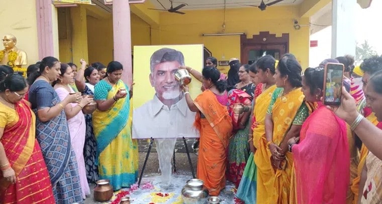 ప్రకాశం జిల్లా పొదిలి పట్టణంలోని తెలుగుదేశం పార్టీ కార్యాలయంలో బుధవారం స్థానిక టిడిపి నాయకుల ఆధ్వర్యంలో మాజీ ముఖ్యమంత్రి నారా చంద్రబాబు నాయుడు చిత్రపటానికి మహిళా నాయకురాలు పాలాభిషేకం చేశారు.