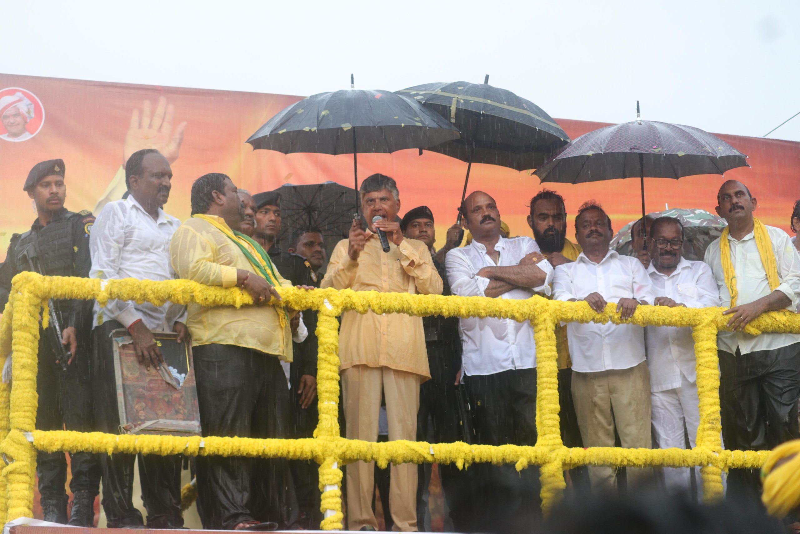 కూటమి భారీ విజయాన్ని పోటెత్తుతున్న ప్రజాస్పందనే ప్రతిబింబిస్తుందని అంటూ, ప్రజలు గెలవాలి రాష్ట్రం నిలబడాలనేదే కూటమిలోని మూడు జెండాల అజెండాగా చంద్రబాబు అభివర్ణించారు. జగన్తో విబేధించారని ఎంపీ రఘురామకృష్ణంరాజుని టార్చర్ పెట్టారని ఆగ్రహించారు. ఎండలకు భయపడి ఇంట్లో కూర్చుంటే మన ఇళ్లకు గొడ్డళ్లు వస్తాయని చమత్కరిస్తూ.. మే 13న పోలింగ్ స్టేషన్లు అదిరిపోవాలని పిలుపునిచ్చారు. ప్రజల ఆస్తులను కొల్లగొట్టి రూ.1000 కోట్లు దోచుకున్న బందిపోటు జగన్ అంటూ, నిత్యావసర ధరల పెరుగుదల, పెట్రోల్, డీజిల్, కరెంట్ చార్జీలు, పన్నుల పెంపుతో ప్రజలపై మోయలేని భారం వేశాడన్నారు. జె.బ్రాండ్స్తో కోట్లాది రూపాయలు కొల్లగొట్టి, ప్రజల జీవితాలతో చెలగాటమాడాడని చంద్రబాబు ధ్వజమెత్తారు.